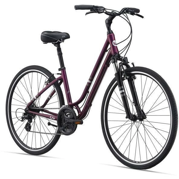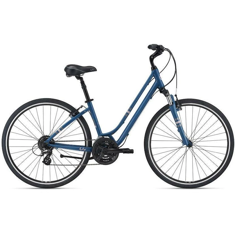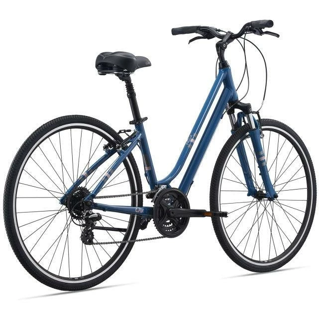 The Liv Flourish FS 1 Women’s hybrid bike rides like a dream, thanks to front suspension and a suspension seatpost that smooth out rough roads to keep you comfortably cruising. With a functional yet elegant design and a lightweight aluminum frame that’s designed specifically for women, the Liv Flourish FS 1 women’s hybrid bike takes you from the market to the city center with ease. The step-through design makes it quick and easy to hop on and off the bike once you’re at your destination. Select models offer integrated fenders and a full chainguard to protect you from dirt or road debris in any kind of weather, plus baskets and racks to carry your essentials. The Liv Flourish FS 1 is a confidence-inspiring city companion designed specifically for women.