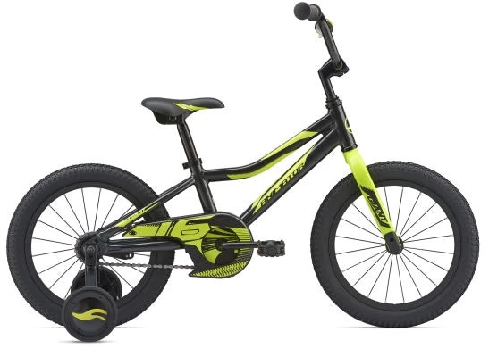 Available with 12 or 16-inch wheels & removable training wheels, this is an express ticket to fun & freedom. The graphics will get him going, & the lightweight aluminum frame is built tough for neighborhood adventures.