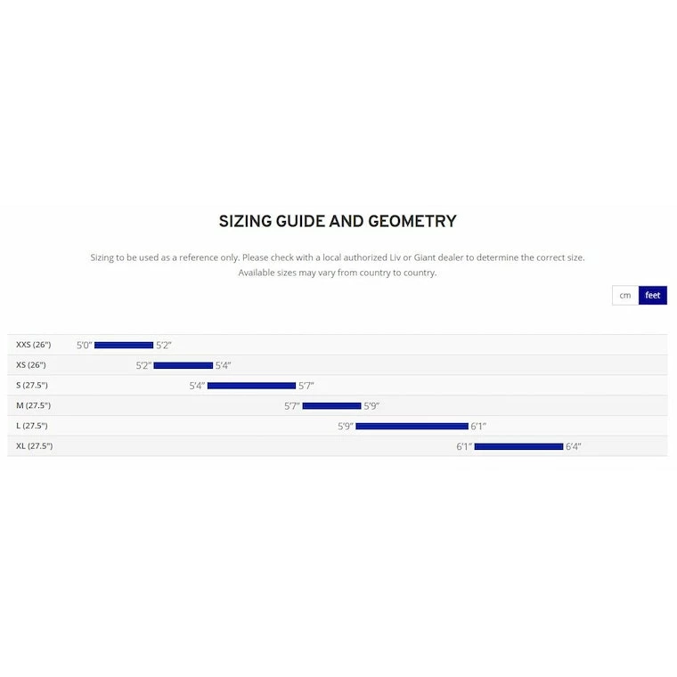Sizes 26: XXS,XS,S 27.5: S,M,L,XL