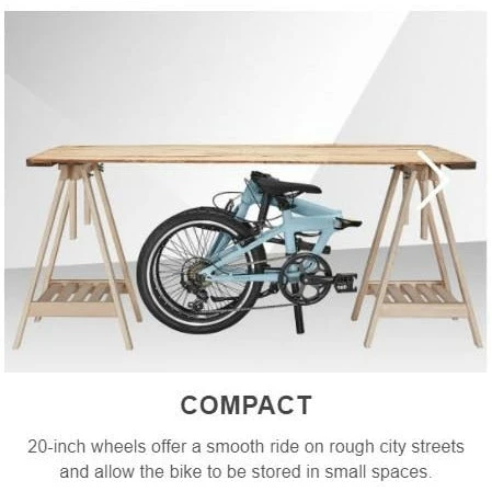 Compact – 20-inch wheels offers a smooth ride on rough city streets and allows the bike to be stored in small places