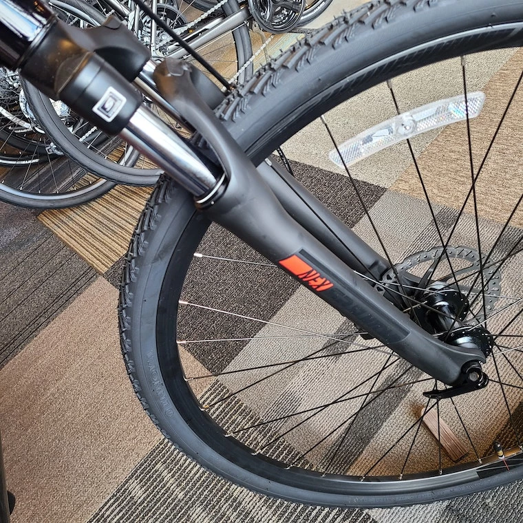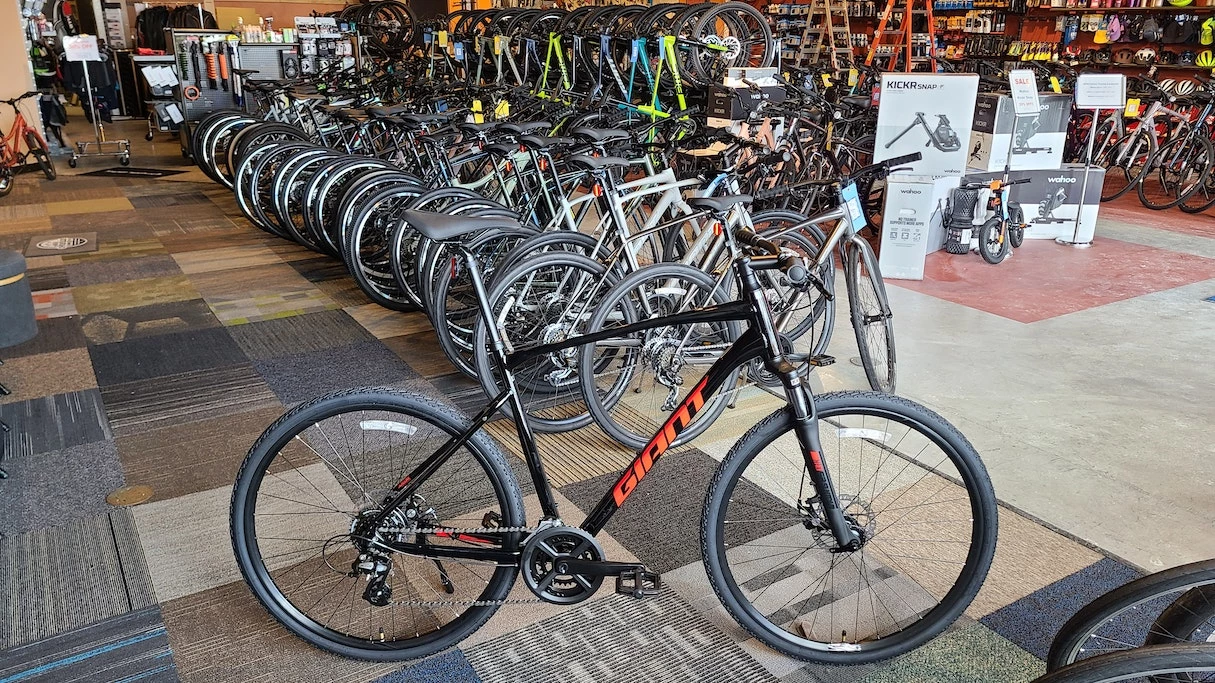 With its confident, flat handlebar positioning and lightweight ALUXX aluminum frame, the Roam gives you all the best qualities of a mountain bike and a road bike. Its front suspension and new D-Fuse seatpost absorb road shocks and vibrations, adding comfort and control. It has powerful disc brakes and durable components, so it can take some bumps on rough city roads. And the fast rolling 700c wheels with Giant’s CrossCut tires can handle smooth roads or dirt with less risk of a flat tire, making it a great choice for town-to-trail adventures.