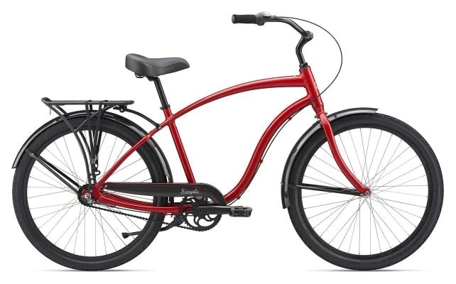 With its beach cruiser DNA & its city bike comforts, Simple Three is at home on any road or path. Beneath the laid-back looks is a smart design with modern features including a lightweight aluminum frame, easy gearing options, fenders & a rear rack. & the comfy balloon tires, plush saddle, & stable upright rider positioning help give Simple its casual, worry-free ride quality.