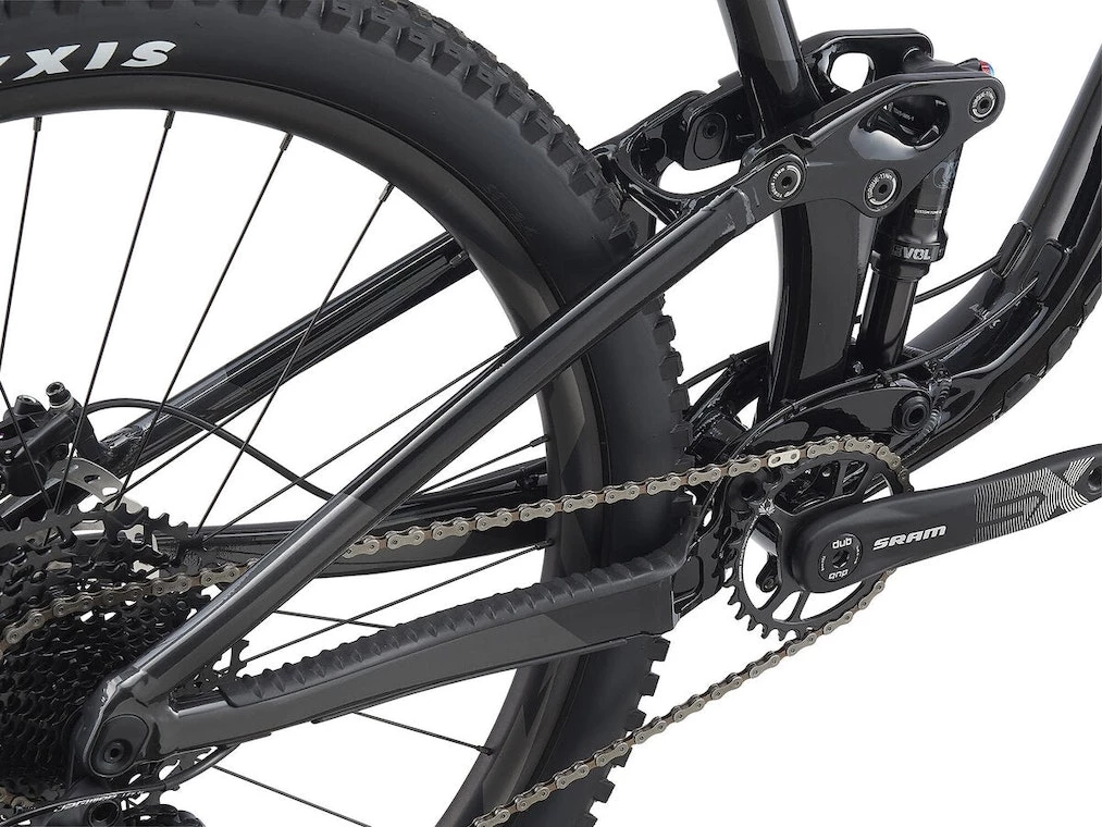 Accessories & ExtrasTubeless preparedAxlesFront: 110 x 15 thru-axle, Rear: 148 x 12mm thru-axleBottom BracketSRAM DUB, press fitBrake LeversShimano MT401BrakesShimano MT420Cassette/Rear CogsSRAM SX Eagle, 11x50ChainSRAMChainrings30TCranksetSRAM SX EagleForkRockShox 35 Gold RL, 150mm, 44mm offset, 15×110 Maxle Stealth, custom tuned for GiantFrameALUXX SL-Grade Aluminum front and rear triangles, 135mm Maestro suspension, flip chipHandlebarsGiant Contact TR35, 780x35mm, 20mm riseHubsGiant Boost, sealed bearingPedalsPlatformRear DerailleurSRAM SX EagleRear ShockFox Float DPS Performance, 185/55, custom tuned for GiantRims/WheelsGiant AM 29, alloySaddleGiant RomeroSeat PostGiant Contact Switch dropper with remote, 30.9ShiftersSRAM SX EagleSpokesSapimStemGiant Contact SL 35TiresFront: Maxxis Minion DHF 29 x 2.5″, EXO, TR, Rear: Maxxis Dissector 29 x 2.4″, EXO, TR, tubeless